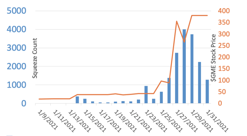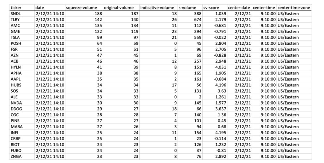 Since the now famous GameStop (GME) short squeeze we have received inquiries about Twitter’s ability to identify short squeezes early and do we have any products to help identify these stocks prior to the squeeze? In fact, Twitter is excellent at identifying early discussions of short squeezes. We have a pre-market open Short Squeeze Alert Report to notify customers of securities with abnormally significant short squeeze discussions.