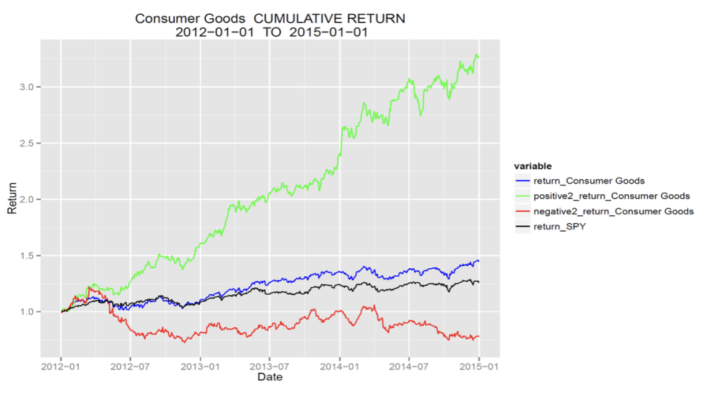 Sentiment data has proven to be very predictive for Consumer Goods. High sentiment stocks in the Consumer Goods Sector have a subsequent open to close cumulative return of +350 percent since inception of SMA sentiment data. Low sentiment stocks have a subsequent open-to-close return of -50% since inception of SMA sentiment data.
