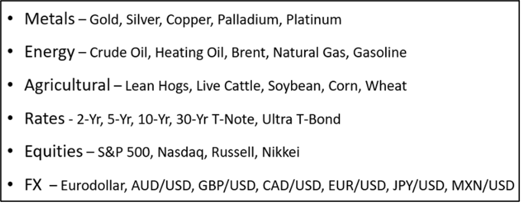 This blog will explore the predictive nature of our Futures Twitter based sentiment factors.  We calculate real time predictive sentiment on 106 futures.  Although factors calculated are identical to equity-based S-factors the NLP is unique because conversations on futures vary significantly based on asset classes. For example, an oil refinery fire is going to be bearish for the owner of the refinery and bullish for the price of oil.  To create the most accurate sentiment scores possible we have created separate NLP for Treasuries, Energy, and Agricultural futures.  The same Tweet can have a positive and negative sentiment score based on the Topic (XOM & CL_F).  We believe we are the only firm using asset class based NLP.